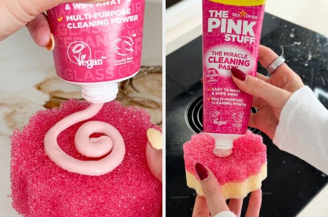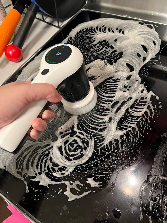 I have this stuff, and omg — it's a lifesaver for a house without a dishwasher. I use it for more than just dishes, too. It's amazing at cleaning my old gas stovetop, and scrubbing it down, which used to take me 30 minutes, takes closer to five, now.