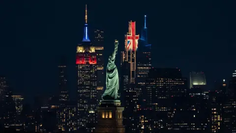 In the evening, New York's iconic Empire State Building was illuminated in red, white, blue and gold in honour of the King and Queen's visit.